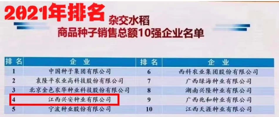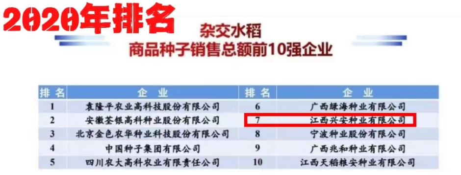 【熱訊】興安種業(yè)公司進(jìn)入雜交水稻種業(yè)全國前5強(qiáng)